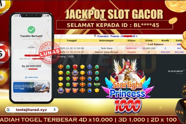 Bukti JP STARLIGHT PRINCESS 1000 – Kami mengucapkan selamat kepada bossku Username ID BL****45 atas kemenangan di permainan SLOT STARLIGHT PRINCESS 1000 dengan total kemenangan sebesar Rp.26,000.000,00,- Kemenangan ini yang pastinya sudah dibayar LUNAS sesuai dengan bukti ya bossku. Lontejitu nih boss, berapapun kemenangan anda akan tetap kami bayar sampai tuntas ya boss. Disini kami mengucapkan…